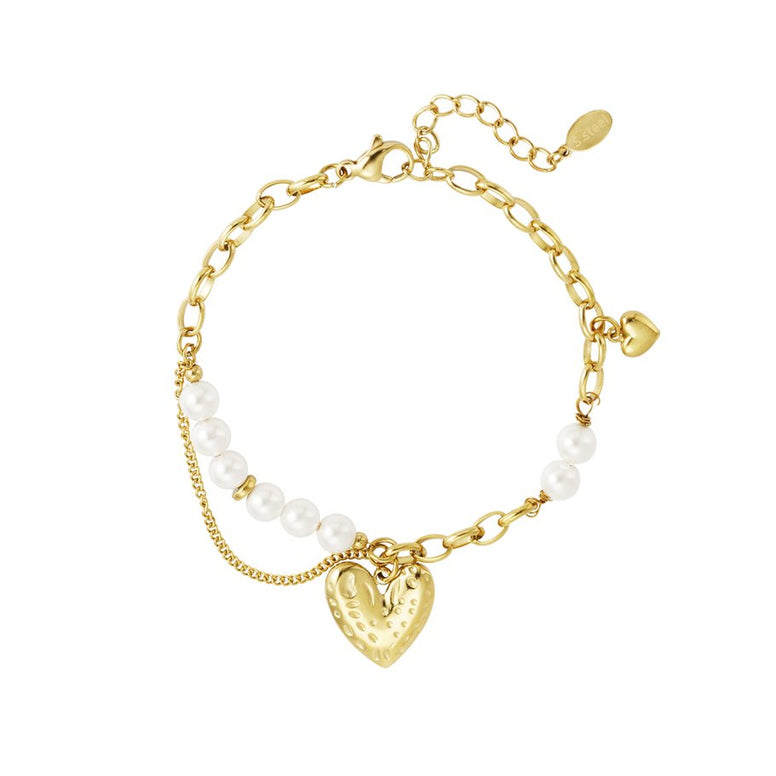 Un bracciale dal design romantico e sofisticato che unisce la delicatezza delle perle alla luminosità della catena dorata.