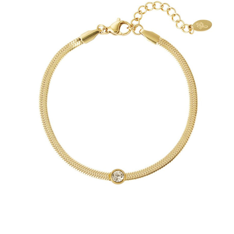 Un bracciale elegante nella sua essenzialità: la catena snake si unisce a un punto luce centrale che illumina il polso con discrezione e raffinatezza.