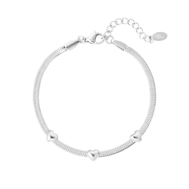 Un design semplice ma ricco di significato: tre piccoli cuori impreziosiscono la catena, simbolo di amore e delicatezza.