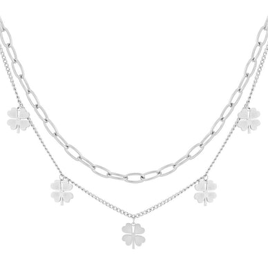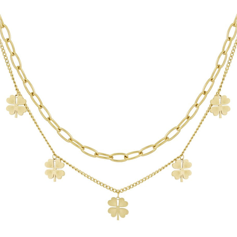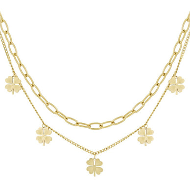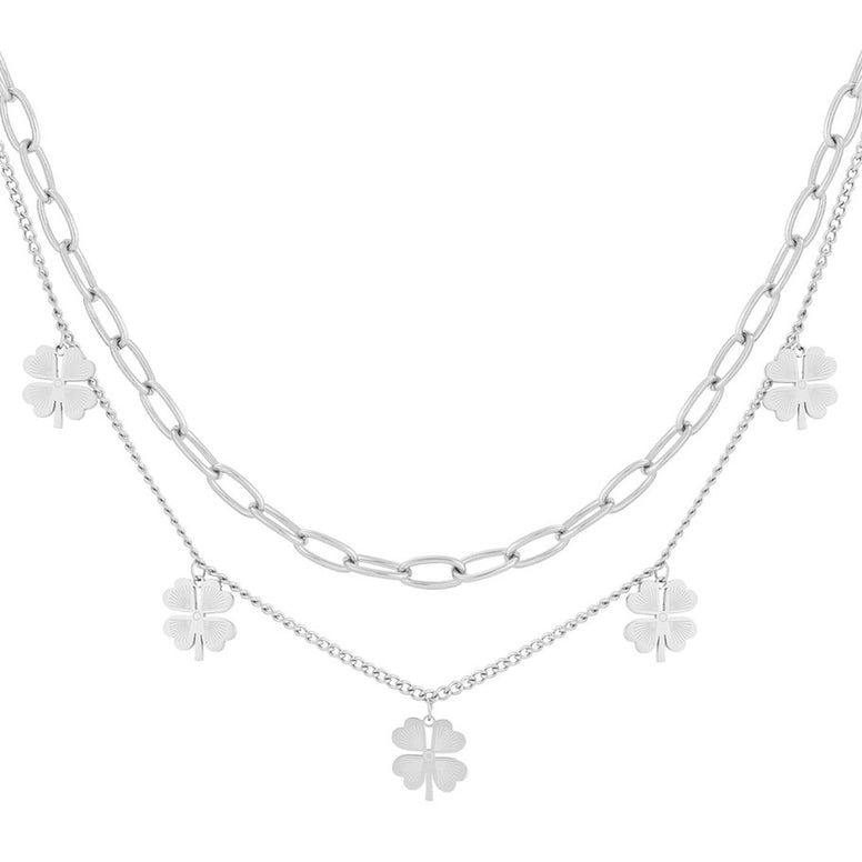 Un gioiello che racchiude l’energia della natura e il simbolo universale della fortuna. Questa collana a doppio filo unisce la delicatezza di una catena sottile a maglie con la forza di una catena grumetta, arricchita da charm a forma di quadrifoglio.